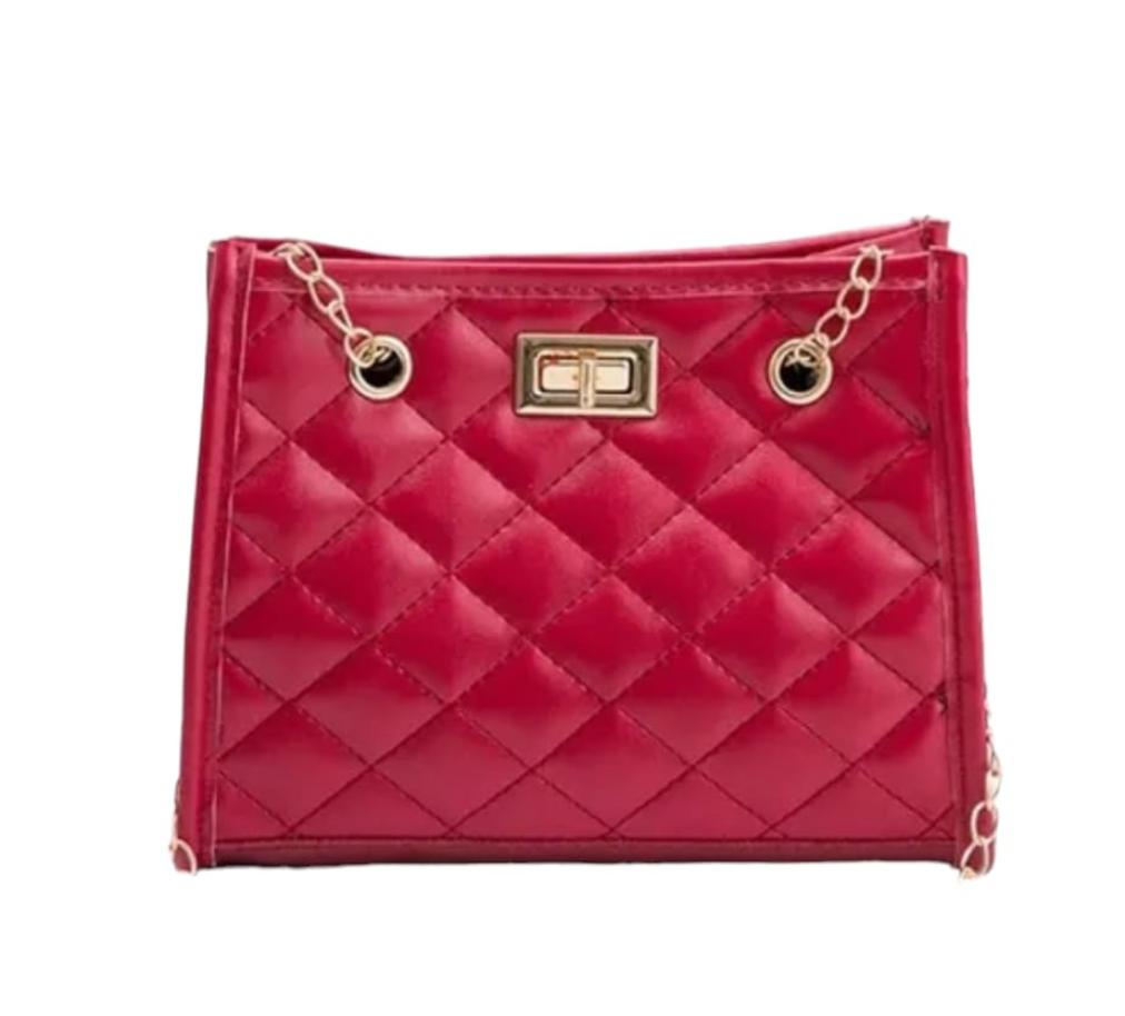Geanta de dama, culoare rosu din piele ecologica. Are un compartiment cu fermoar. Este prevazuta cu un maner si bareta reglabila pentru umar. Model casual