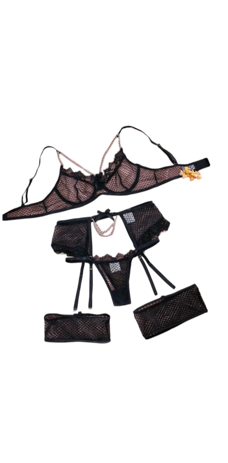 Lenjerie intima dama sexy, culoare Negru cu lantic, marime S model 219